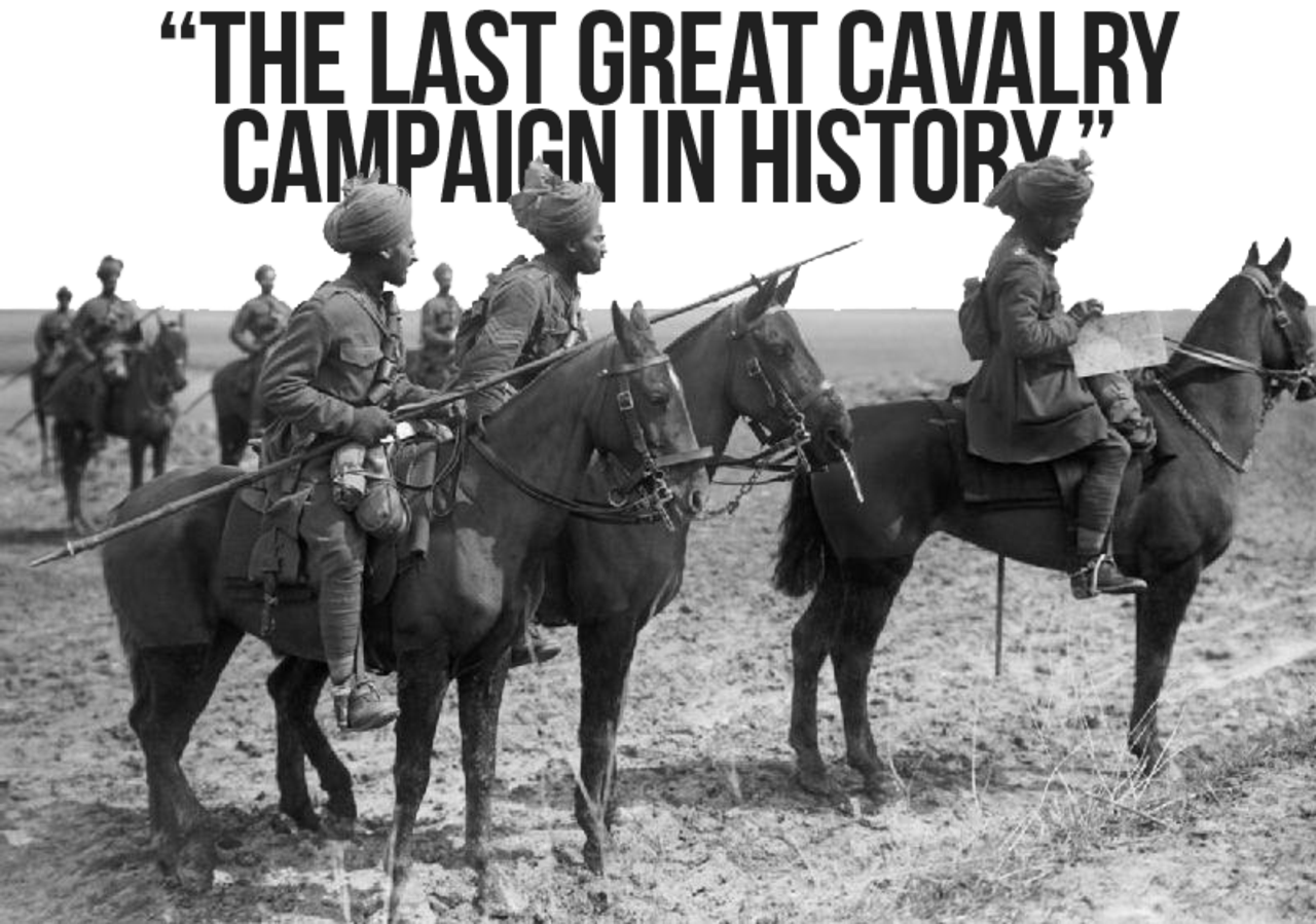 Integral to that victory was “the last great cavalry campaign in history.” Although Indian infantry prepared, assaulted, and broke through the Ottoman lines during Allenby’s fall offensive, it was the Desert Mounted Corps that pushed through the Ottoman gaps and prevented an orderly Ottoman retreat. This sweeping cavalry ride accomplished what European troops had been unable to do in the stalemate of Europe. New York Times correspondent W. T. Massey reported on “great feats by the cavalry” and described Indian charges: “brilliantly … perfectly timed … masterly success … a feat almost without parallel in this war.”