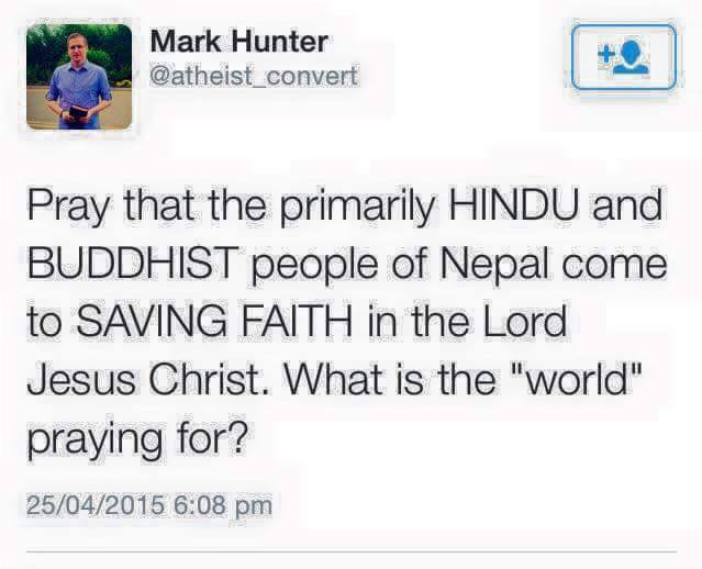 Meanwhile Christian missionaries looking for conversion opportunities among the earthquake victims have come under severe criticism internationally for releasing a barrage of tweets like :